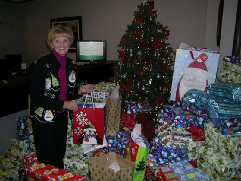 Our office collects Toys for the Mission. We had over 800 toys that our office collected this year. We wrap them and take them to Volunteers of America and help Santa hand them out. It is a very rewarding and humbling experience.